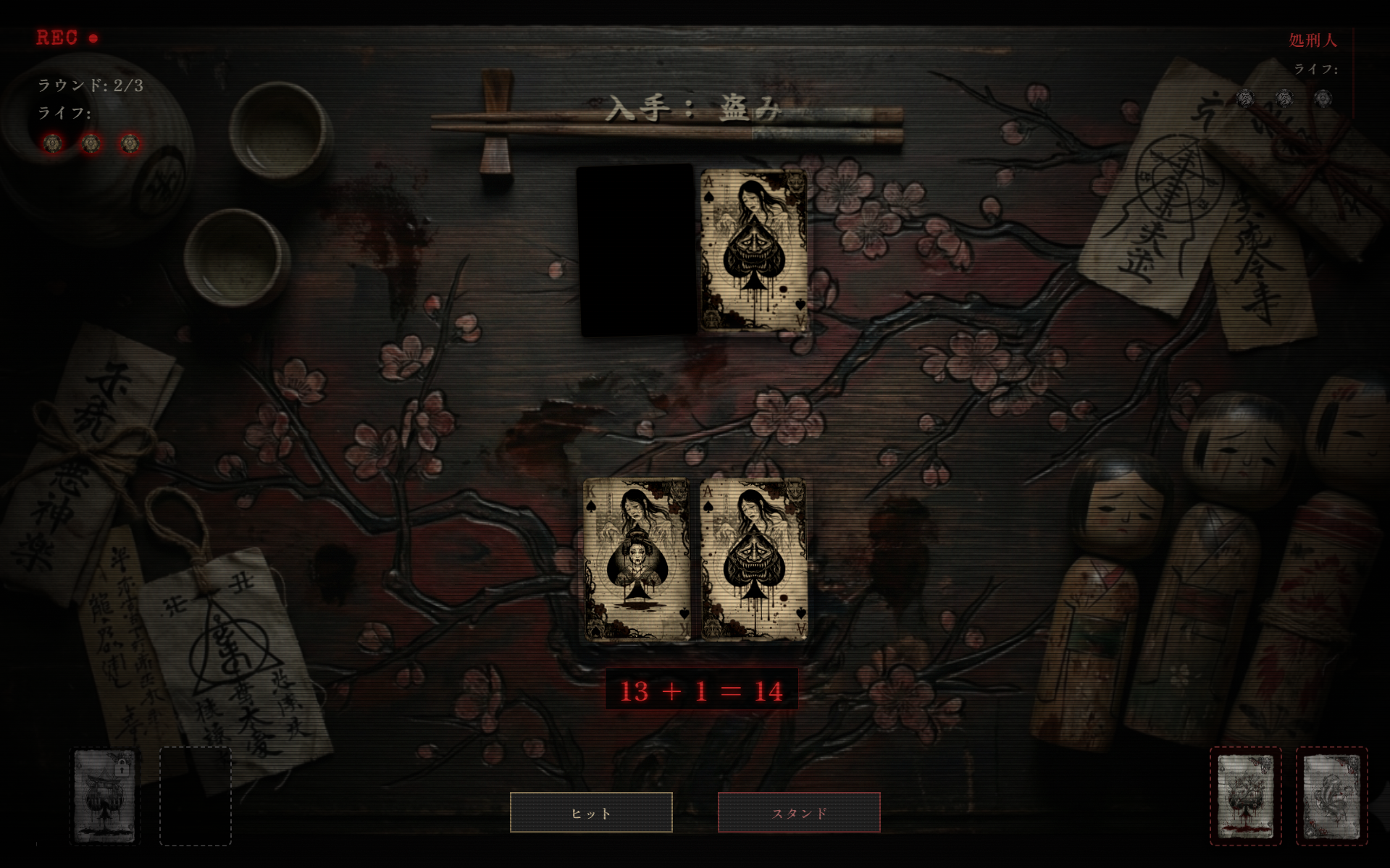 Play Blackjack with modified rules, inspired by Resident Evil 7 DLC 21.